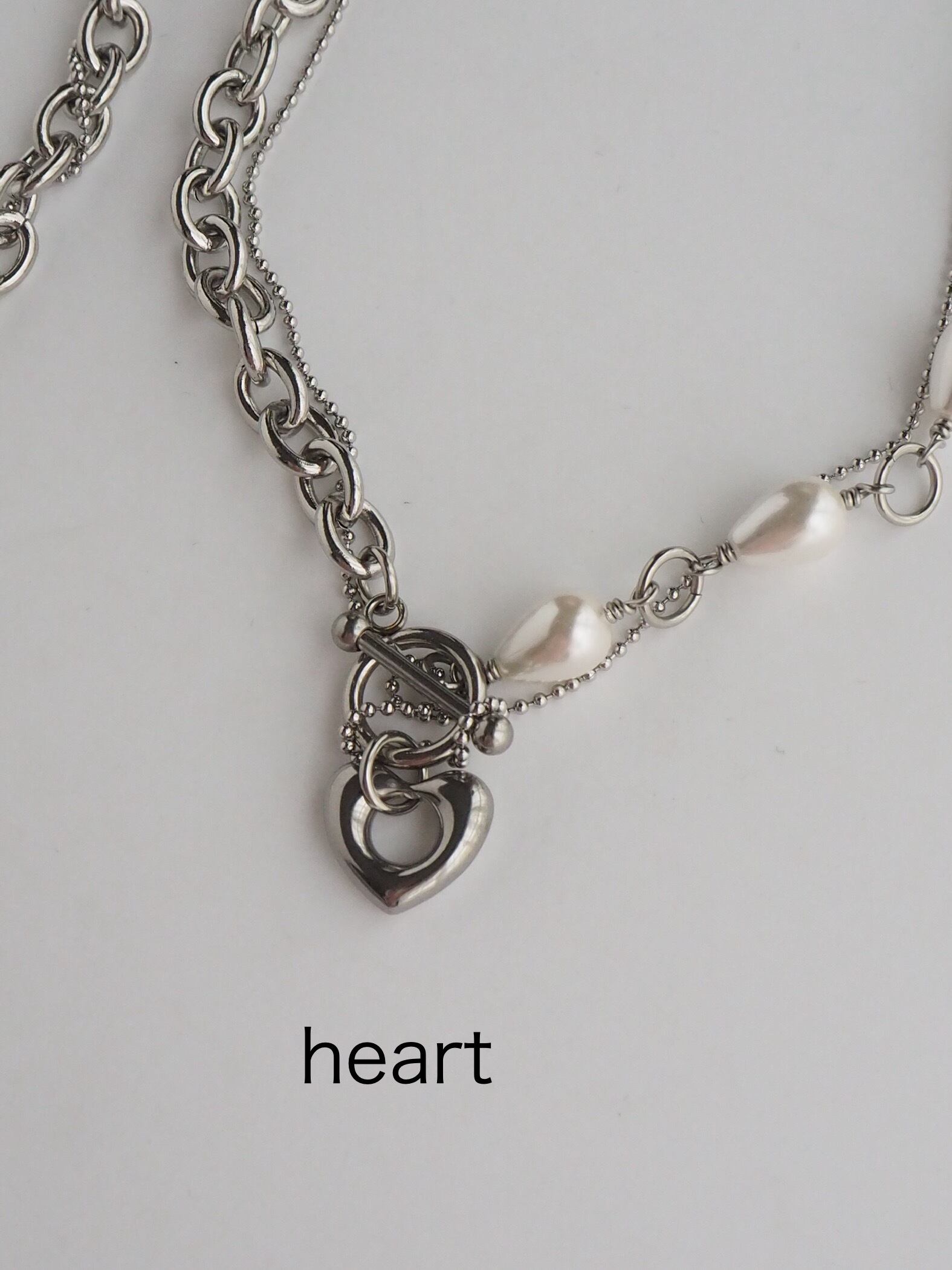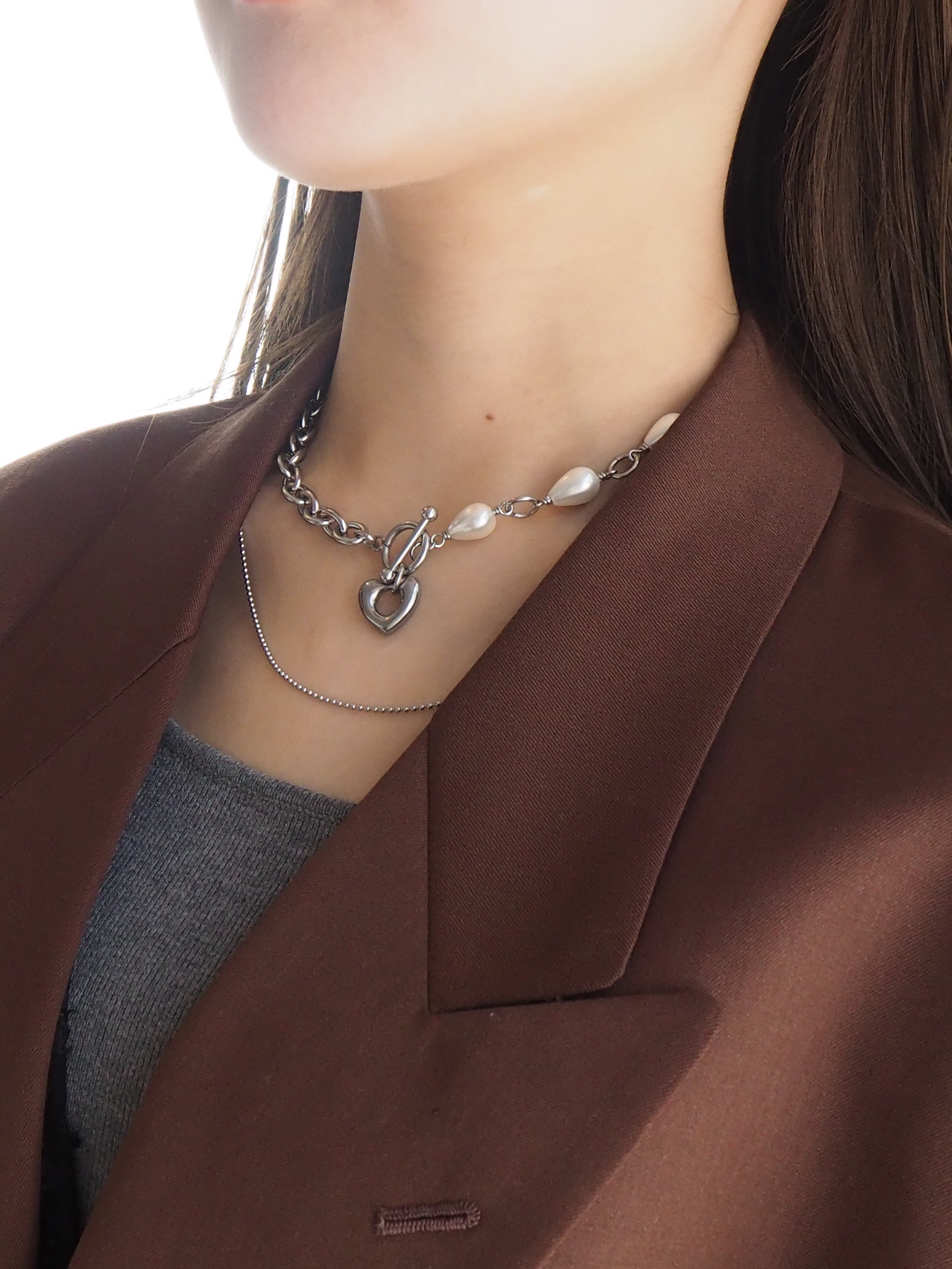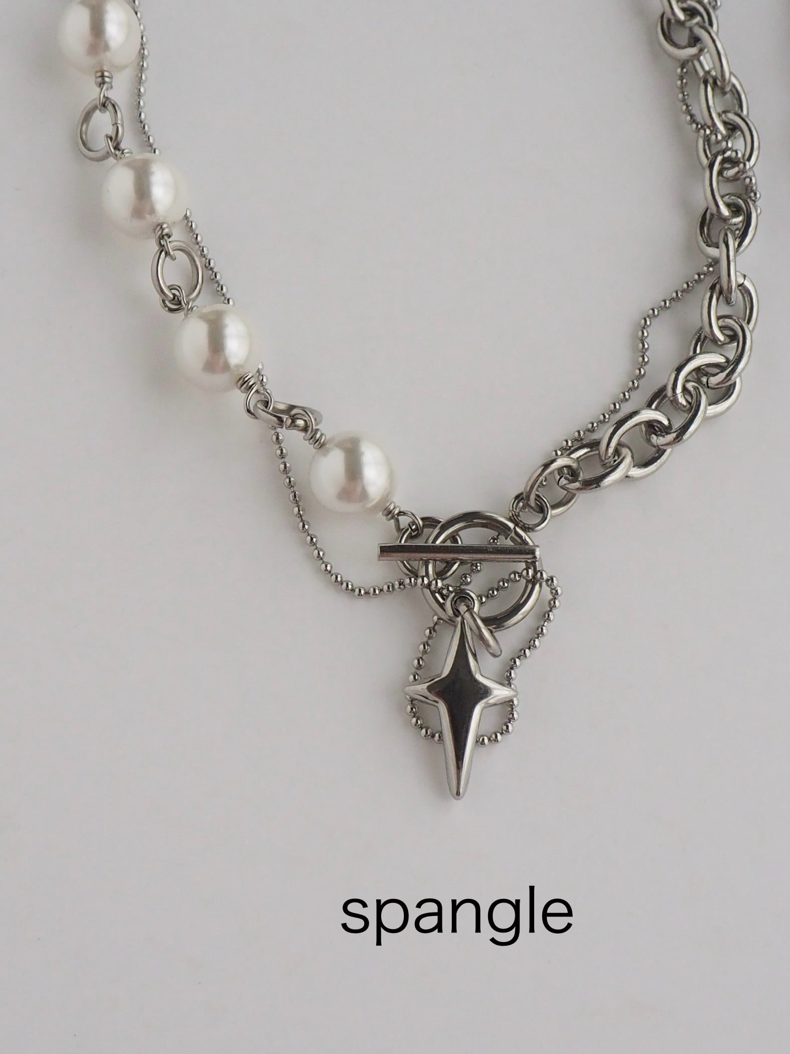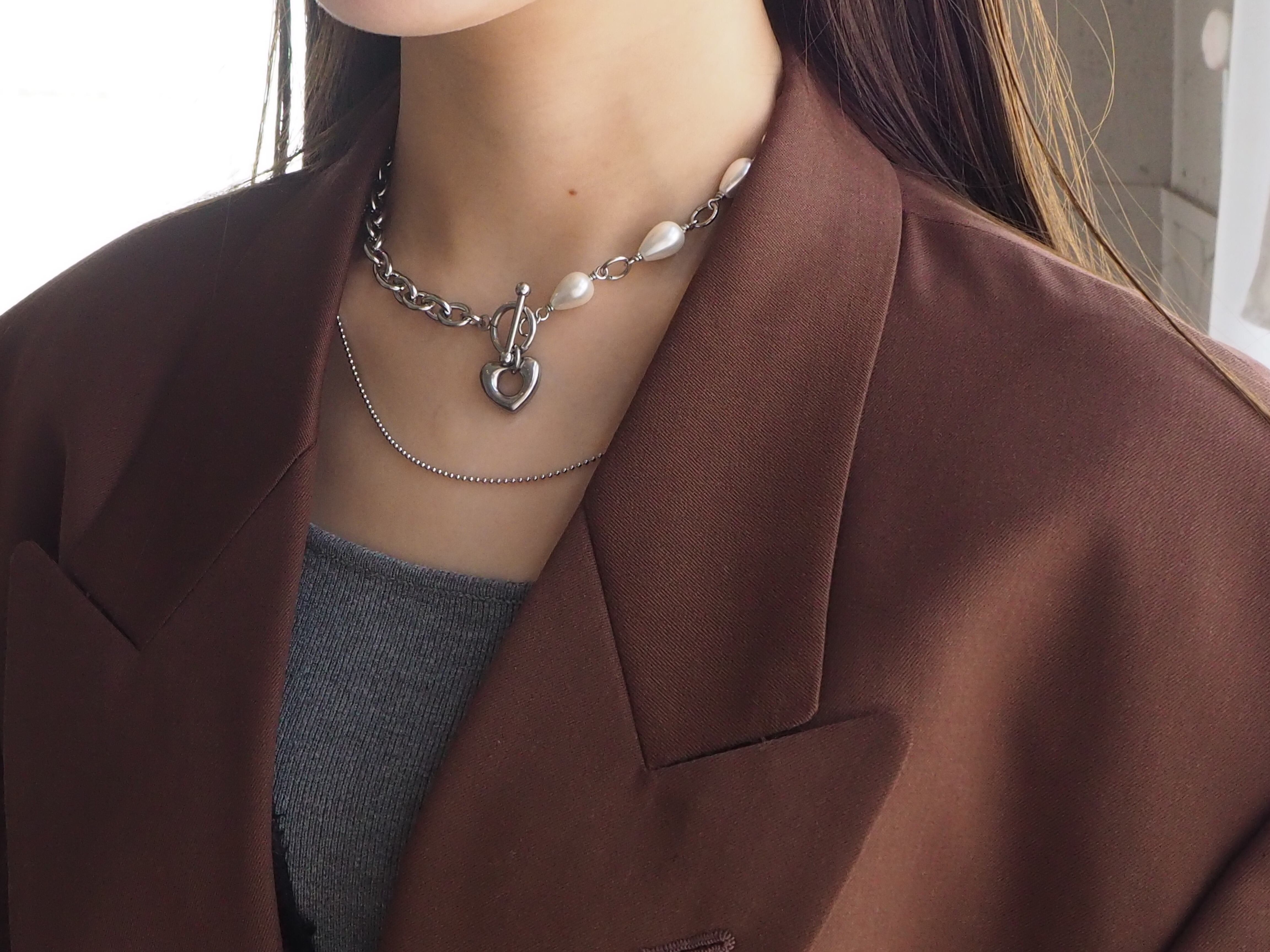 つやんつやんの貝パールとコマの詰まったチェーン、それに細いボールチェーンを合わせた
